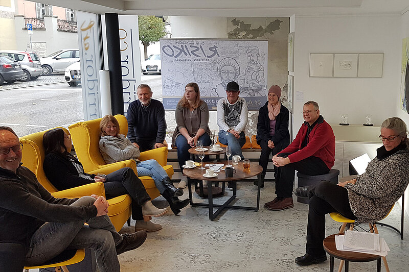 Ebenfalls begeistern konnte dann am darauffolgenden Sonntag der Art-Brunch, bei dem frische Partybrötchen von der Bäckerei Herzog, heißer Kaffee, ein Gläschen kalter Sekt sowie hausgemachte Konfitüren und Aufstriche serviert wurden. Die gemütliche, eher familiäre Gesellschaft durfte schließlich noch einer Lesung mit eigenen Texten der Künstlerin lauschen.